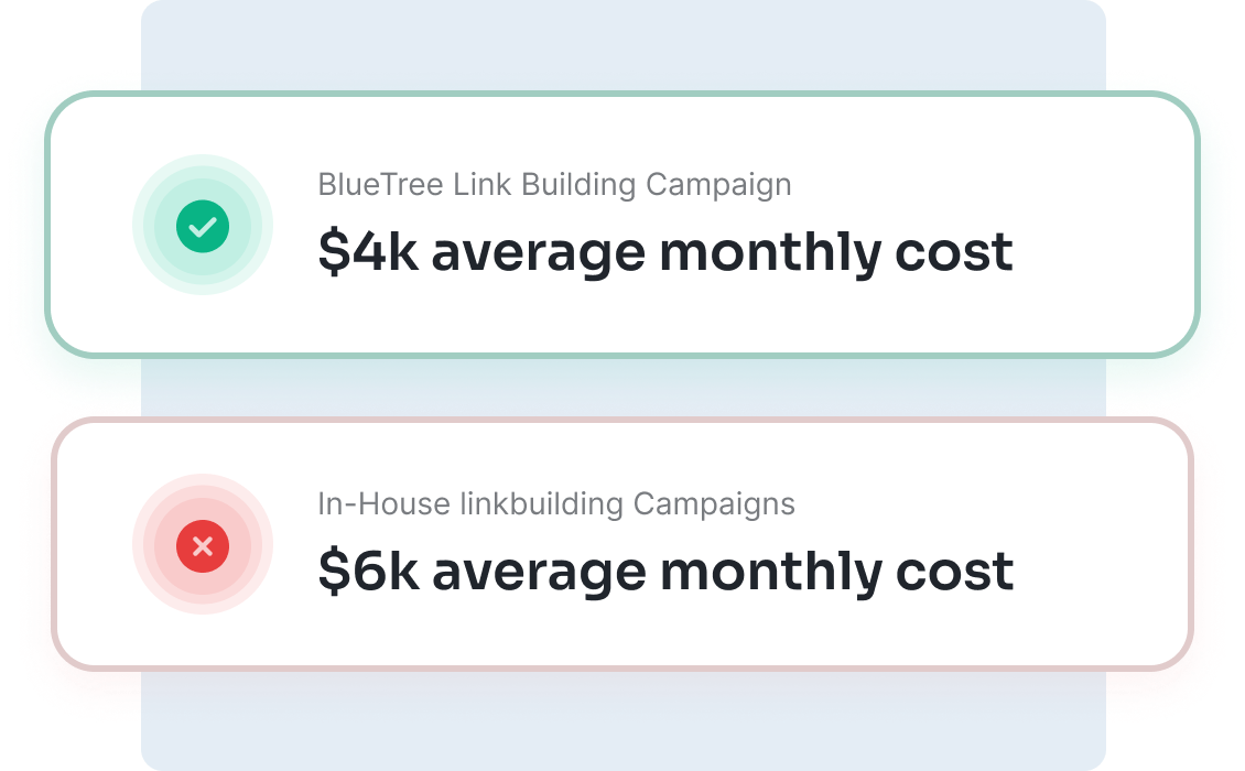 By going with a monthly plan from BlueTree, you can run monthly link building campaigns at a significantly lesser cost than by hiring full-time staff.